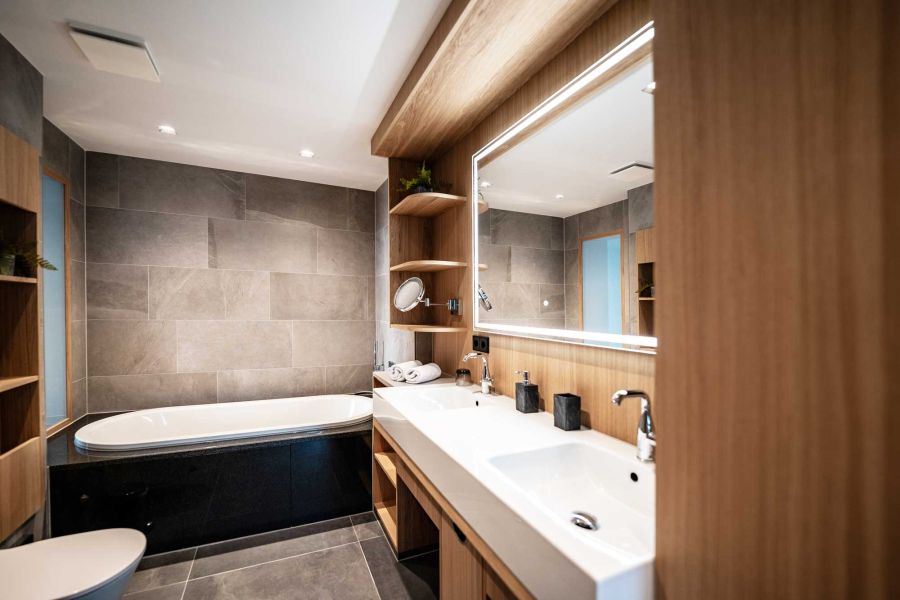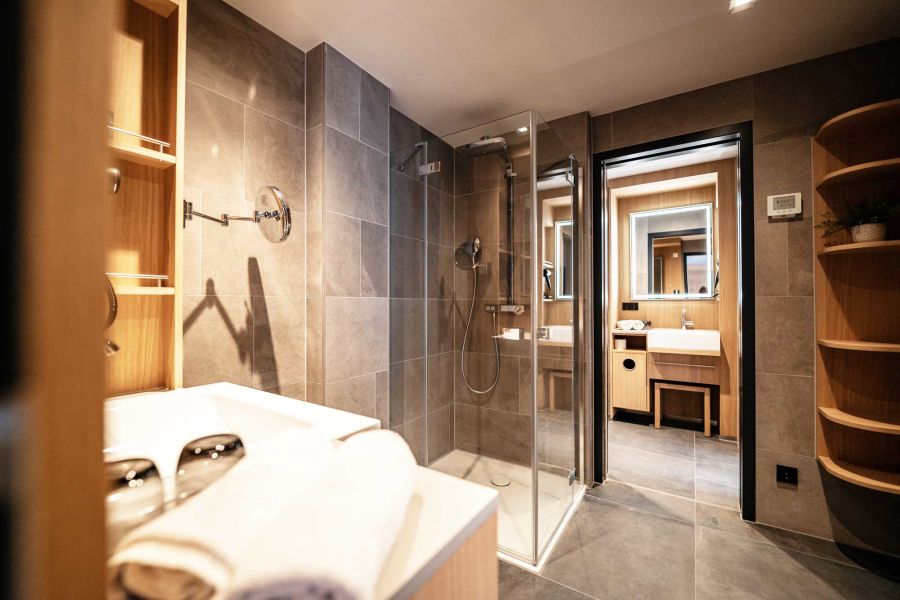 Entdecken Sie die exquisite Ausstattung unserer Zimmer und Suiten, die Ihnen einen luxuriösen Aufenthalt im Kulmberghaus garantieren. Jedes Zimmer verfügt über ein wunderschönes, modernes Bad mit einer geräumigen Dusche, um Ihnen höchsten Komfort zu bieten. Unsere Suiten sind zusätzlich mit einer einladenden Badewanne ausgestattet, damit Sie nach einem ereignisreichen Tag herrlich entspannen können.