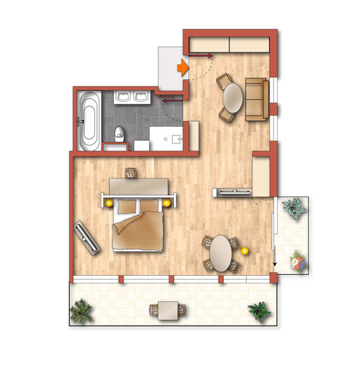 Unsere Suiten sind darauf ausgelegt, bis zu vier Personen bequem aufzunehmen, was sie zur perfekten Wahl für Familien oder Gruppen macht. Genießen Sie die privaten Süd- und Ostbalkone, die Ihnen die Möglichkeit bieten, den Sonnenaufgang zu bestaunen und die ersten warmen Sonnenstrahlen des Tages zu erleben.